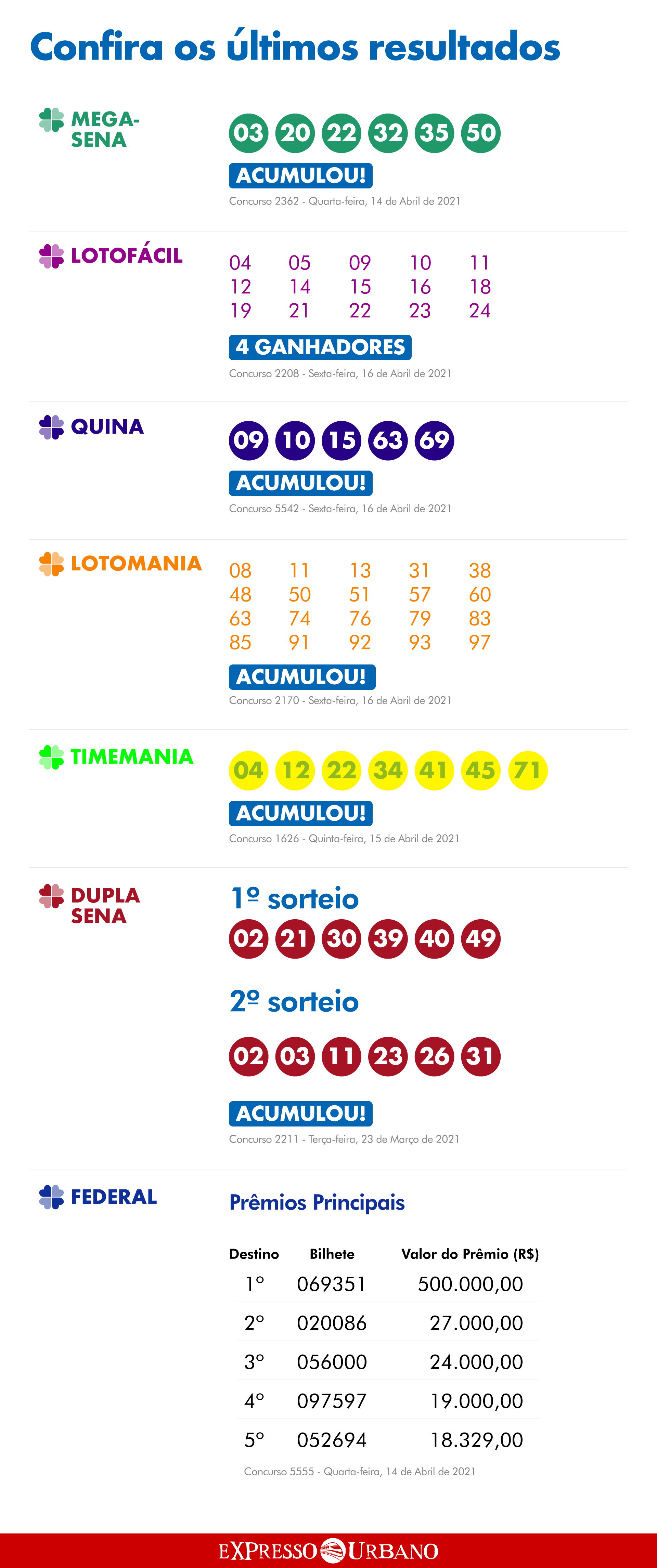 CONFIRA OS RESULTADOS DOS ÚLTIMOS CONCURSOS DAS LOTERIAS