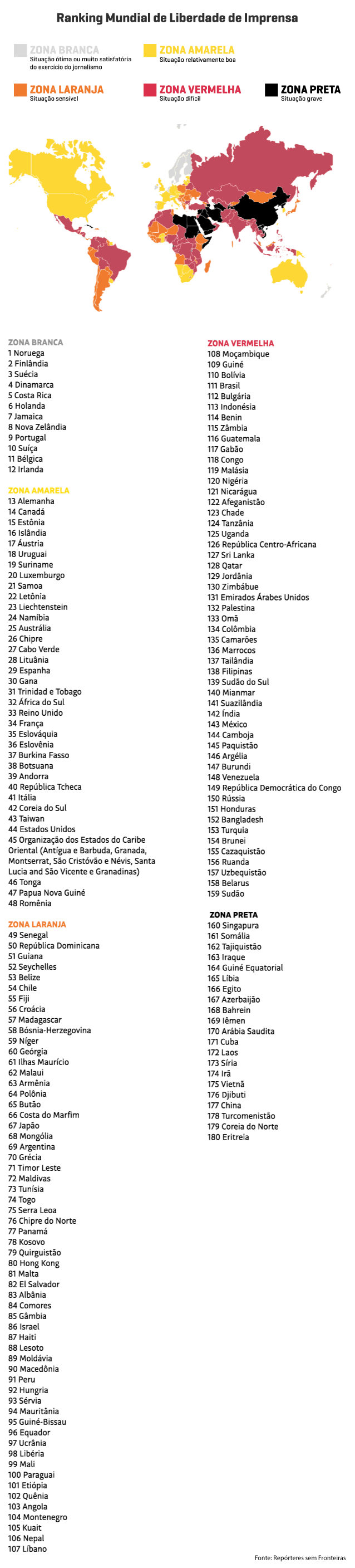 Relatório “Classificação Mundial da Liberdade de Imprensa 2020”, da ONG Repórteres Sem Fronteiras.